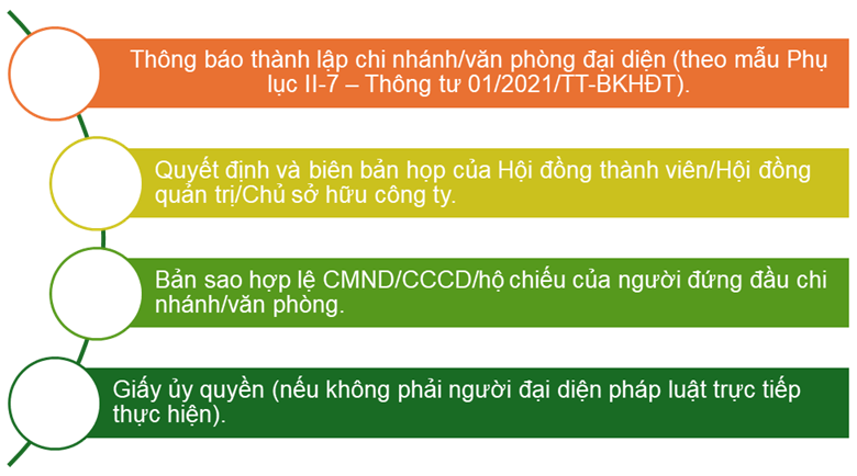 chi nhánh, văn phòng đại diện. Hồ sơ bao gồm: