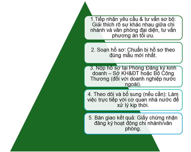 doanh nghiệp từ khâu chuẩn bị hồ sơ, nộp đăng ký, đến khi chi nhánh / văn phòng