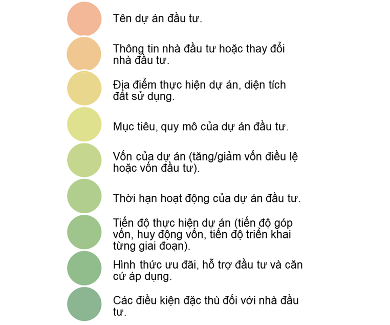 khi dự án hoặc nhà đầu tư có sự thay đổi làm ảnh hưởng đến nội dung ghi trên